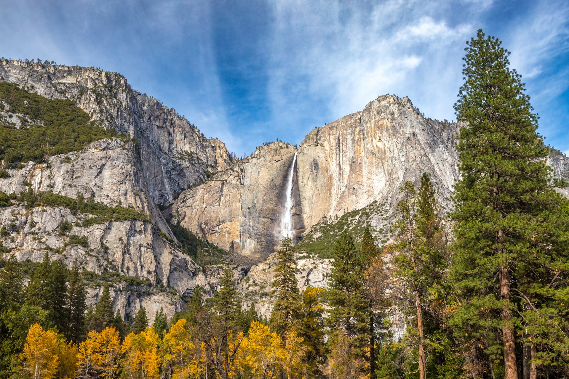 Yosemite Falls isn’t just California’s tallest waterfall – at 2,425 feet, it’s the fifth tallest in the world. This three-tiered giant consists of Upper Yosemite Fall (1,430 feet), the middle cascades (675 feet), and Lower Yosemite Fall (320 feet). The sheer scale of this natural wonder will leave you speechless.